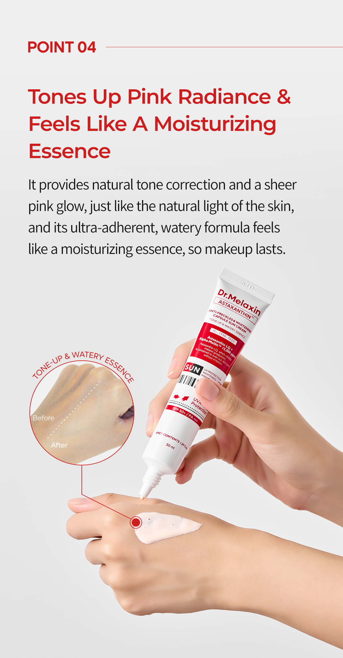 Water, C12-15 Alkyl Benzoate, Methylpropanediol, Titanium Dioxide, Caprylic/Capric Triglyceride, Polysilicone-15, Octyldodecanol, Niacinamide, Butylene Glycol, 1,2-Hexanediol, Aluminum Hydroxide, Stearic Acid, Polyglyceryl-10 Myristate, Behenyl Alcohol, (-)-alphabisabolol, Polyacrylate Crosspolymer-6, Polyglyceryl-2 Stearate, Hydrogenated Vegetable Oil, Glyceryl Stearate, Glyceryl Caprylate, Lactose, Arachidyl Alcohol, Stearyl Alcohol, Potassium Cetyl Phosphate, Microcrystalline Cellulose, Xanthan Gum, Cetearyl Alcohol, Polyhydroxystearic Acid, Arachidyl Glucoside, Sodium Acrylate/Sodium Acryloyldimethyl Taurate Copolymer, Cocos Nucifera (Coconut) Oil, Polyisobutene, Ethylhexylglycerin, Adenosine, Glyceryl undecylenate, CI 77492, Fragrance, Disodium EDTA, CI 77491, t-Butyl Alcohol, Astaxanthin, Coco-Caprylate/Caprate, Tocopheryl Acetate, Sorbitan Oleate, Caprylyl/Capryl Glucoside, Glucose, Hydroxypropyl Methylcellulose, Triethoxycaprylylsilane, Tranexamic Acid, Ascorbic Acid