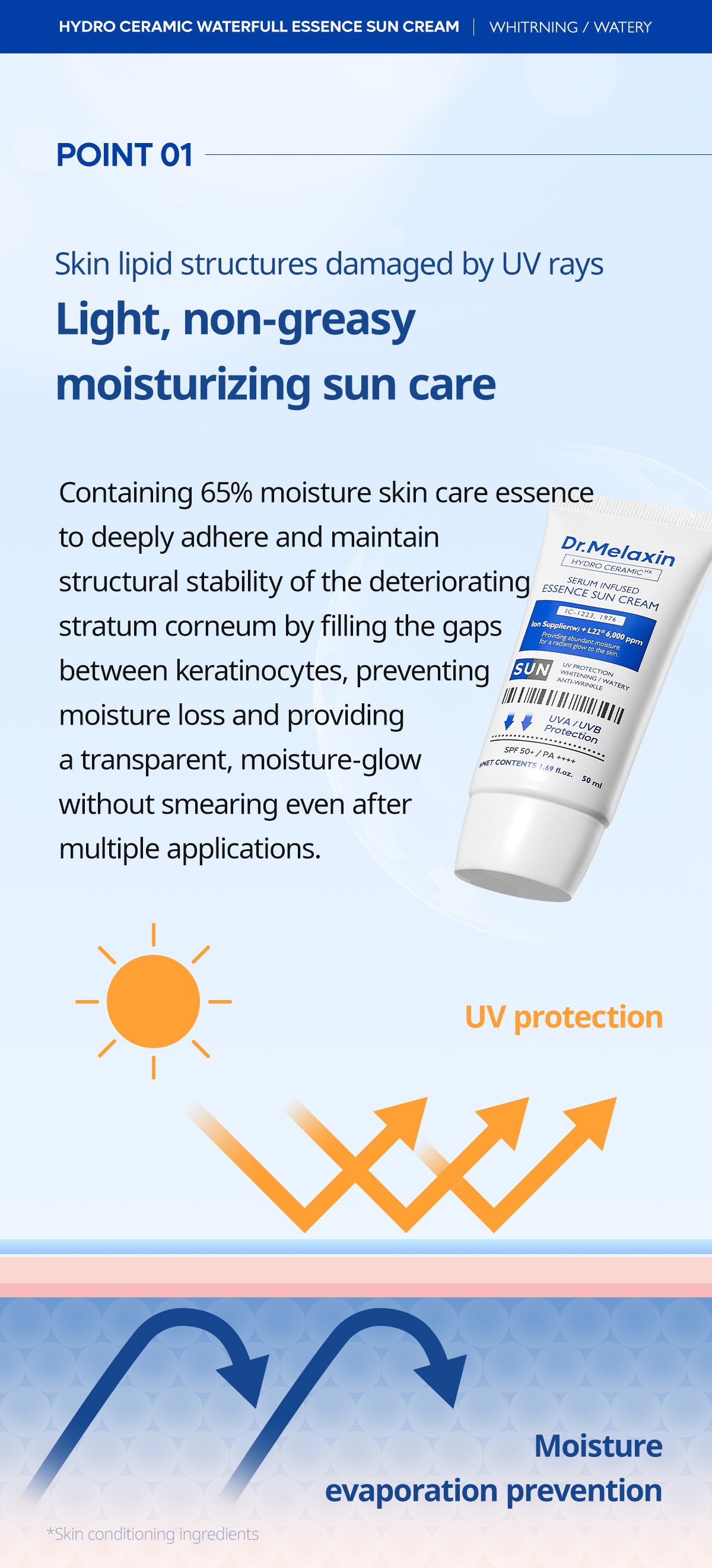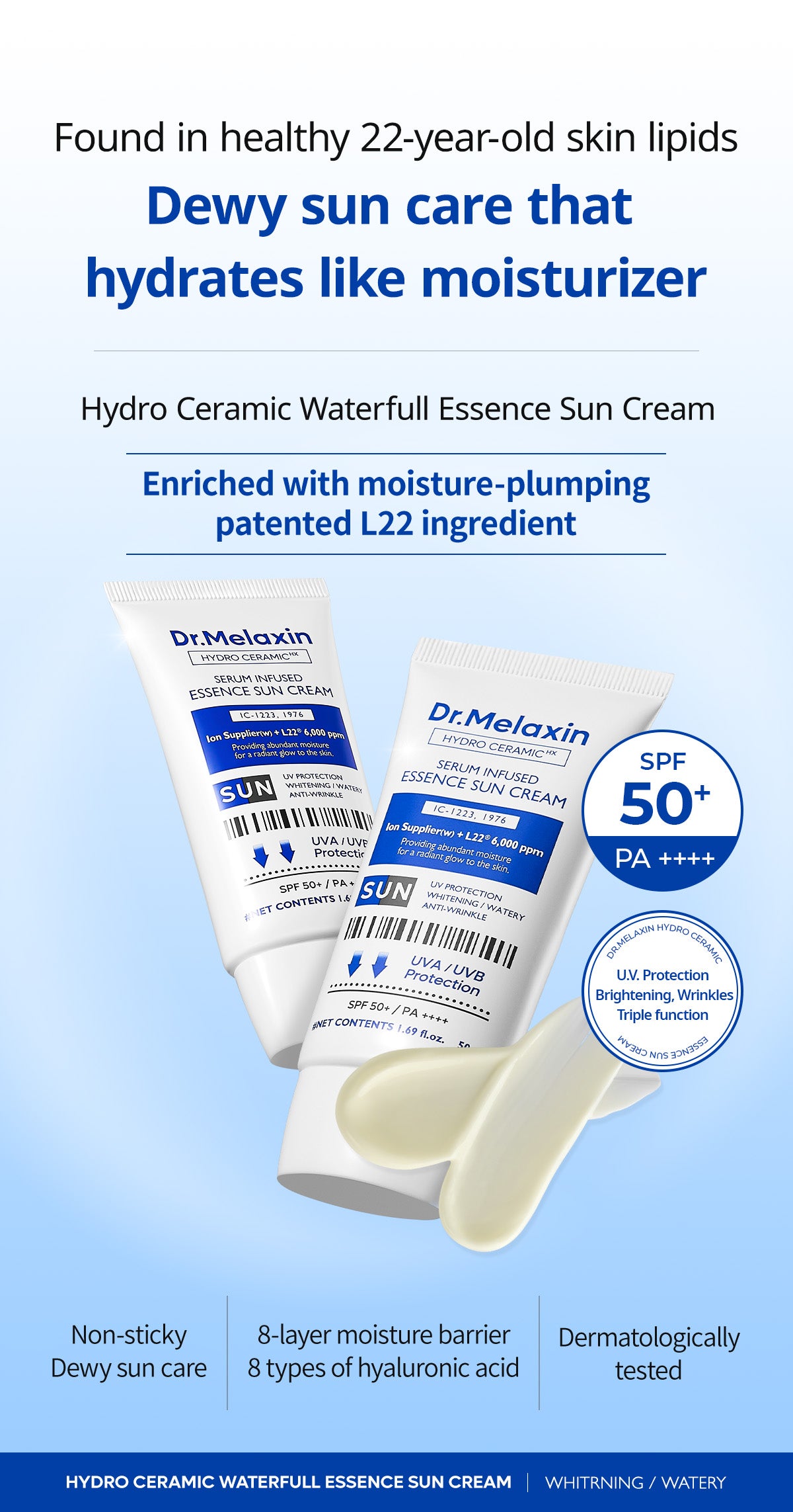 - Non-sticky Dewy sun care UV<- PA+++ / SPF 50+