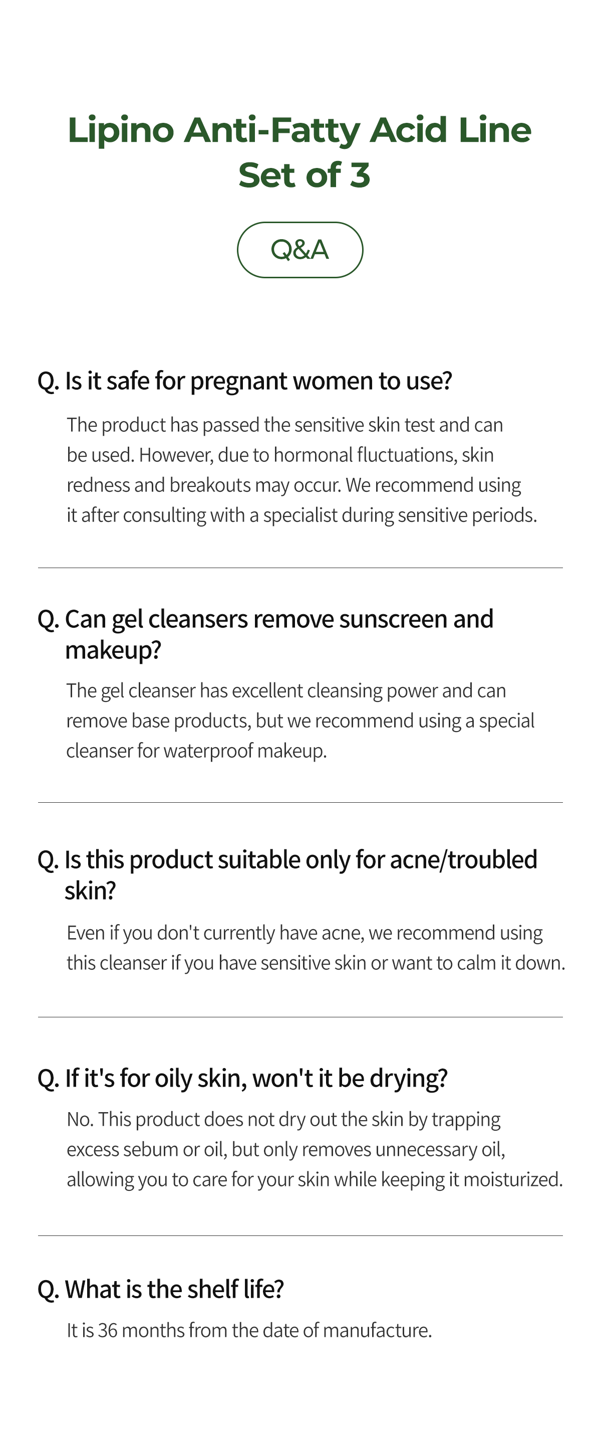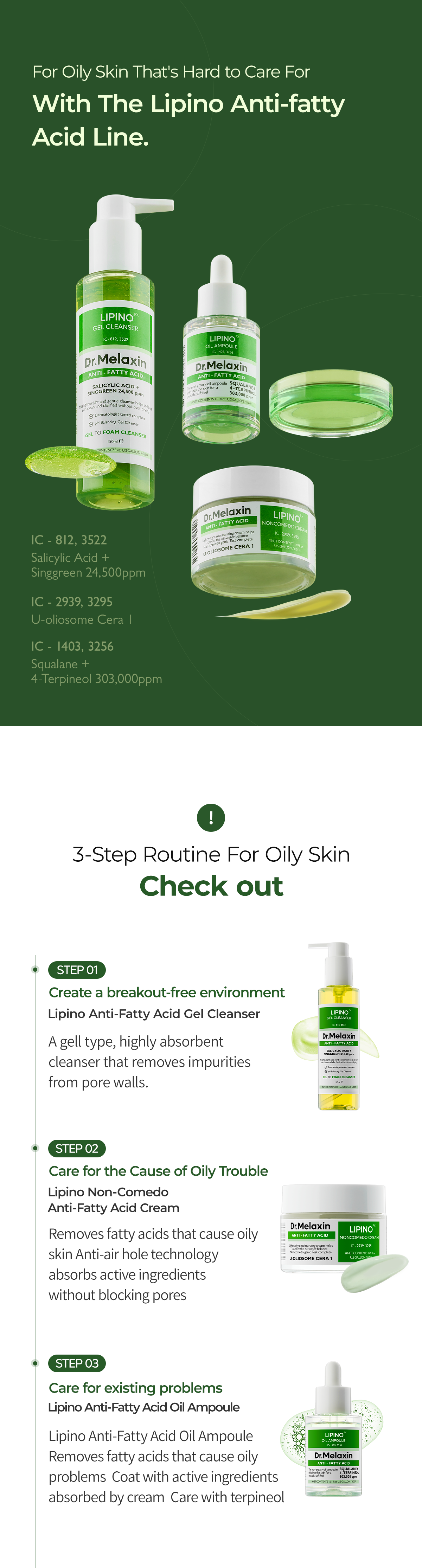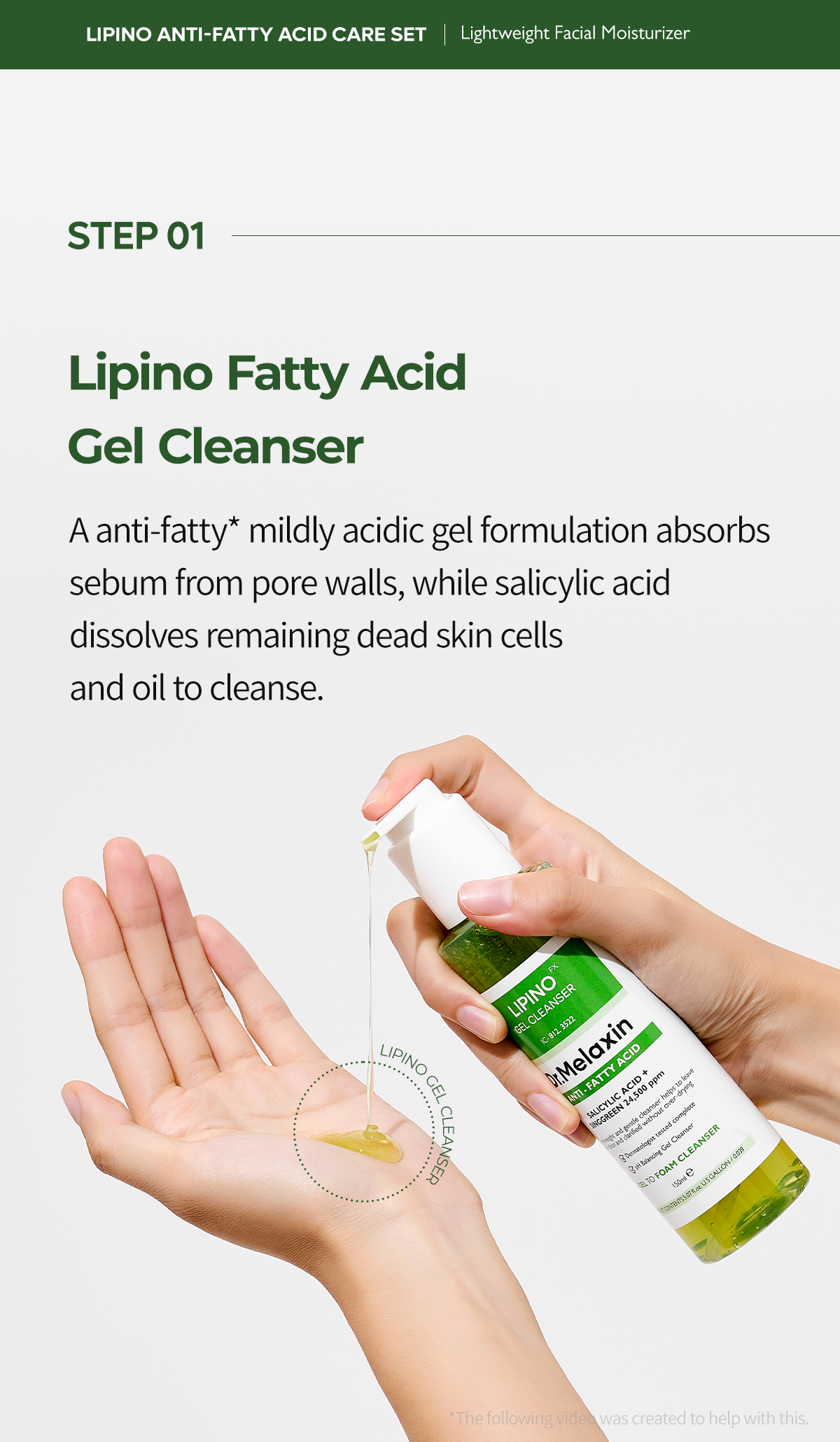 [Gel Cleanser] Water, Sodium C14-16 Olefin Sulfonate, Glycerin, Acrylates Copolymer, Propanediol, Coco-Betaine, Butylene Glycol, Polyglyceryl-4 Caprate, Polyglyceryl-6 Caprylate, Tromethamine, Potassium Benzoate, Salicylic Acid, Citric Acid, Lauryl Hydroxysultaine, Coco-glucoside, Decyl Glucoside, Pogostemon Cablin Oil, Sorbitol, Rosmarinus Officinalis (Rosemary) Leaf Oil, Polyquaternium-10, Sodium Chloride, Carica Papaya (Papaya) Fruit Extract, Ethylhexylglycerin, Pyrus Malus (Apple) Fruit Extract, Prunus Mume Fruit Extract, Vitis Vinifera (Grape) Fruit Extract, Trisodium Ethylenediamine Disuccinate, Caramel, Artemisia Vulgaris Oil, Candida Bombicola/Glucose/Methyl Rapeseedate Ferment, Hyaluronic Acid, Hydrolyzed Hyaluronic Acid, Sodium Hyaluronate, Yellow 5 (CI 19140), Dipropylene Glycol, Blue 1 (CI 42090), Helianthus Annuus (Sunflower) Seed Oil, Ceramide NP.