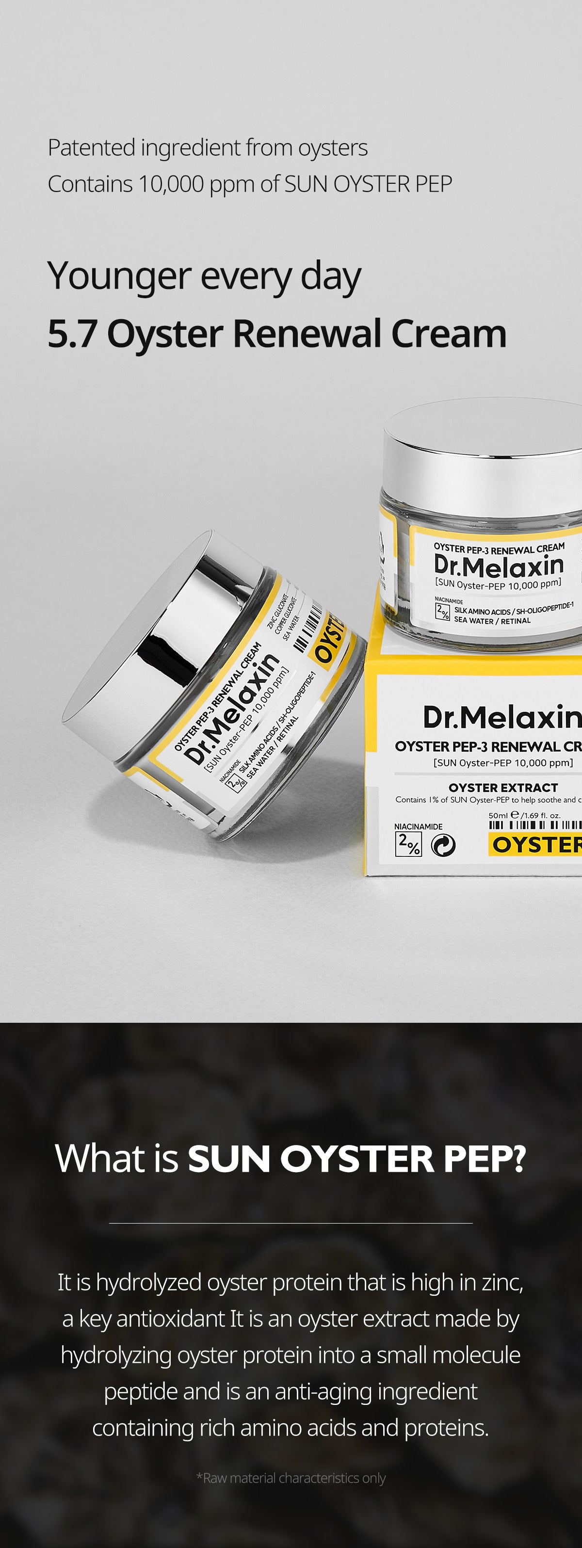 - Contains 10,000ppm of antioxidant key substance oyster extract and SUN OYSTER PEP