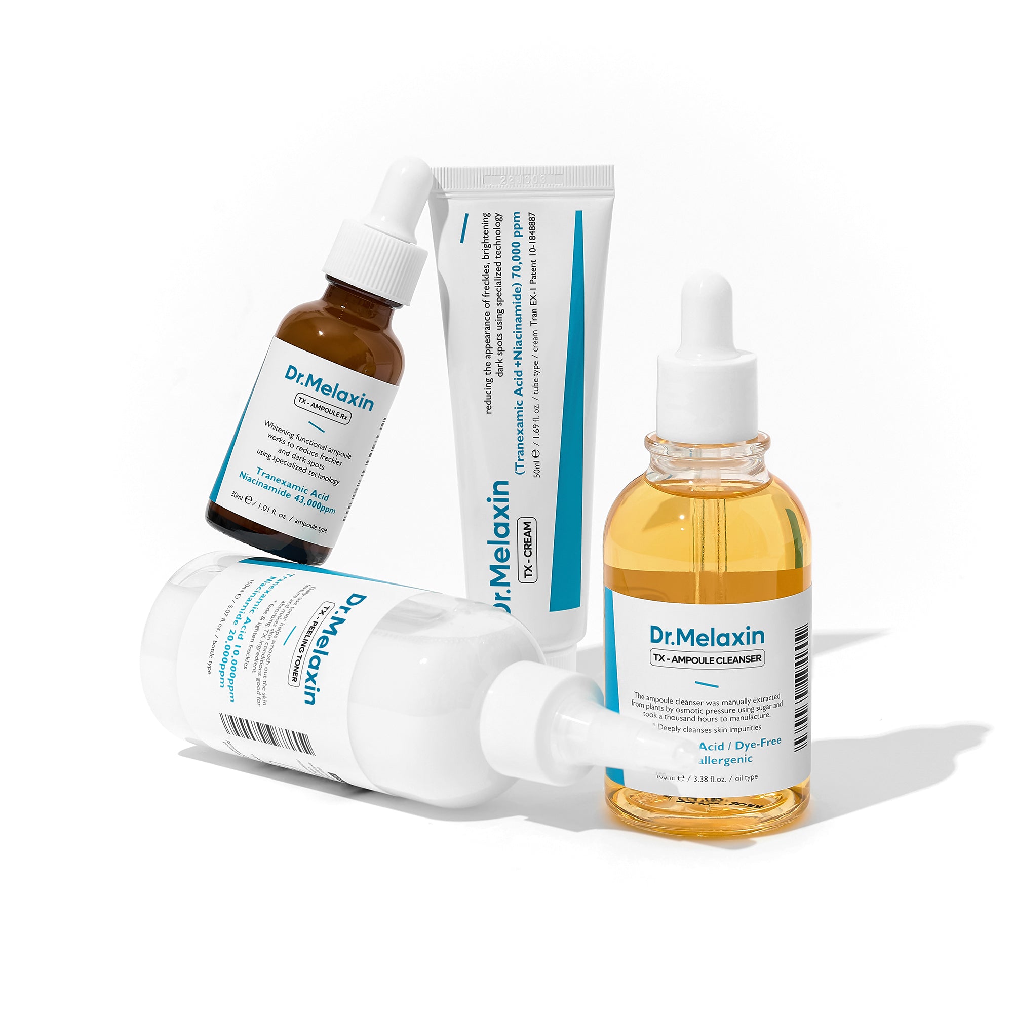 Dr. Melaxin's TX Freckle Care Line features enhanced Nano Tranexamic Acid, optimizing the fight against melanin production. This improved formula deeply targets the source of melanin, offering a lasting solution to freckles while ensuring sustained skin clarity and brightness.